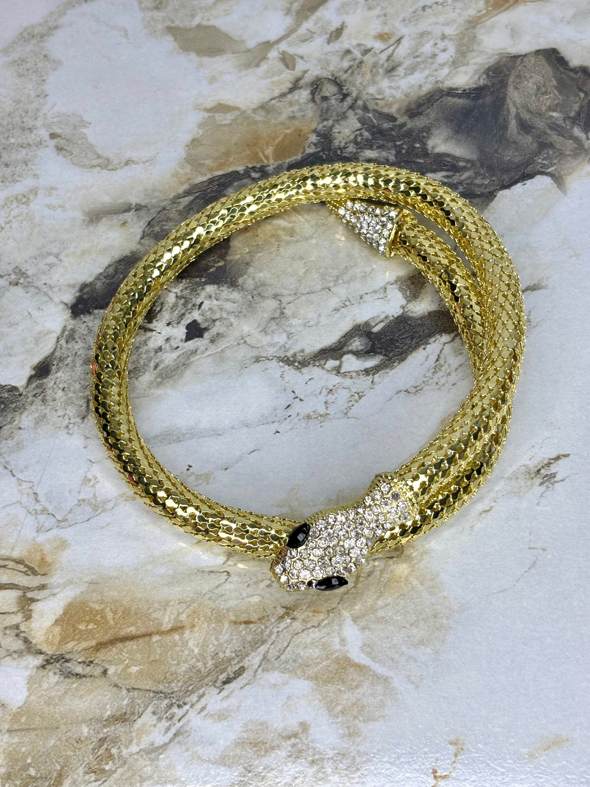 Golden Snake Necklace Rhinestones Wear as necklace and bracelet (Anti tarnish Stainless steel 18k gold plated