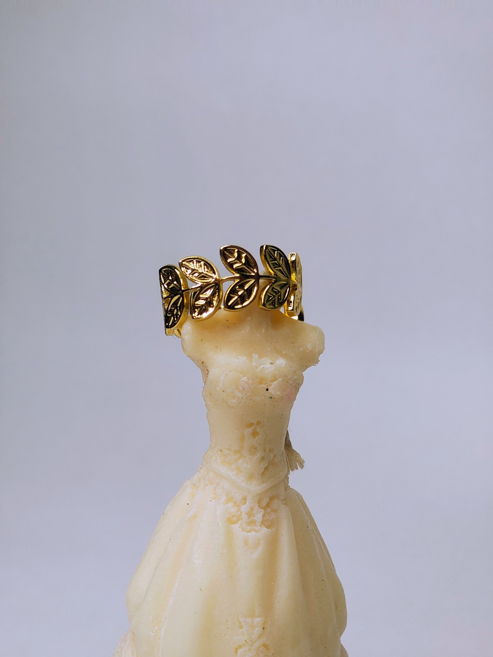 Leaf Theme Adjustable Ring (Anti-Tarnish, Stainless Steel 18K Gold Plated)